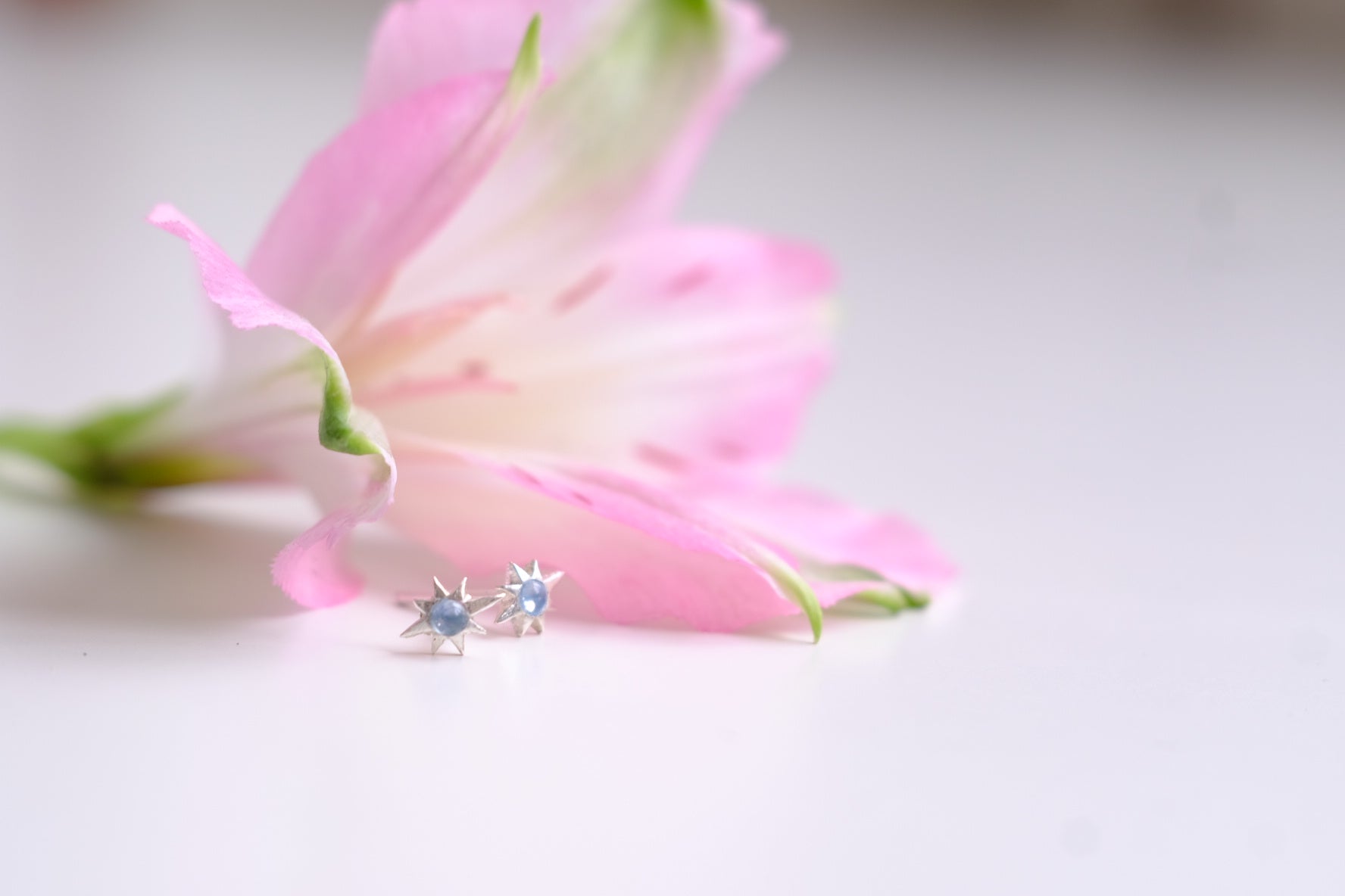 Embedded within the center of the star charms there are tiny drops of moonstone.