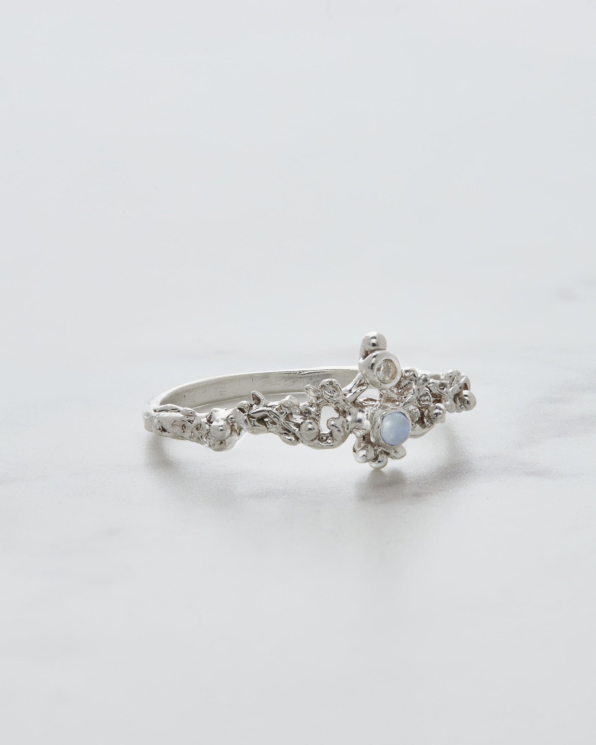 Stone: Moonstone cabochon in the middle, cubic zirconia on top