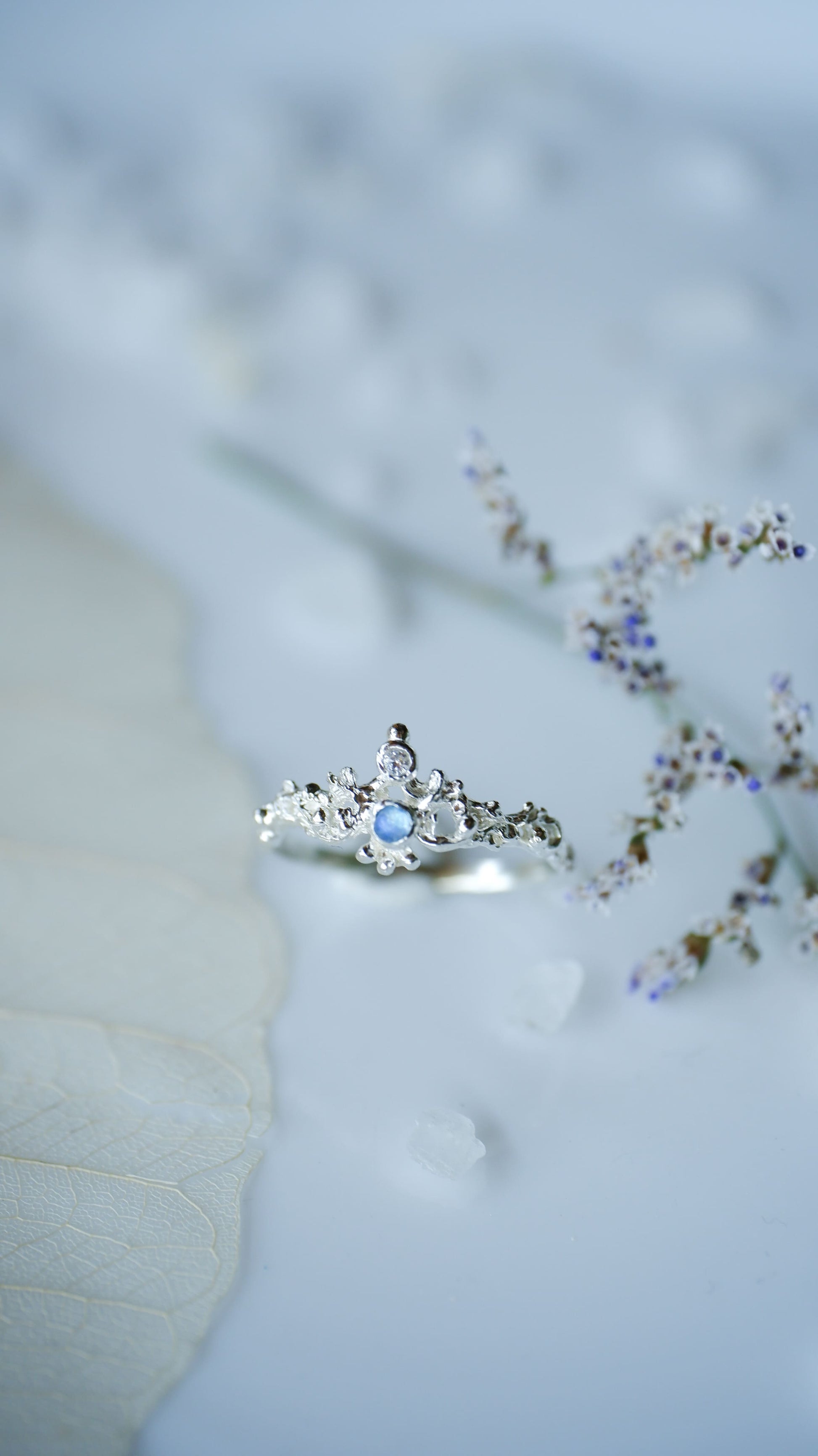 I called this ring an elven princess, cause it's shape resembles a fantasy tiara. And the moonstone on it’s top is like an evening star.