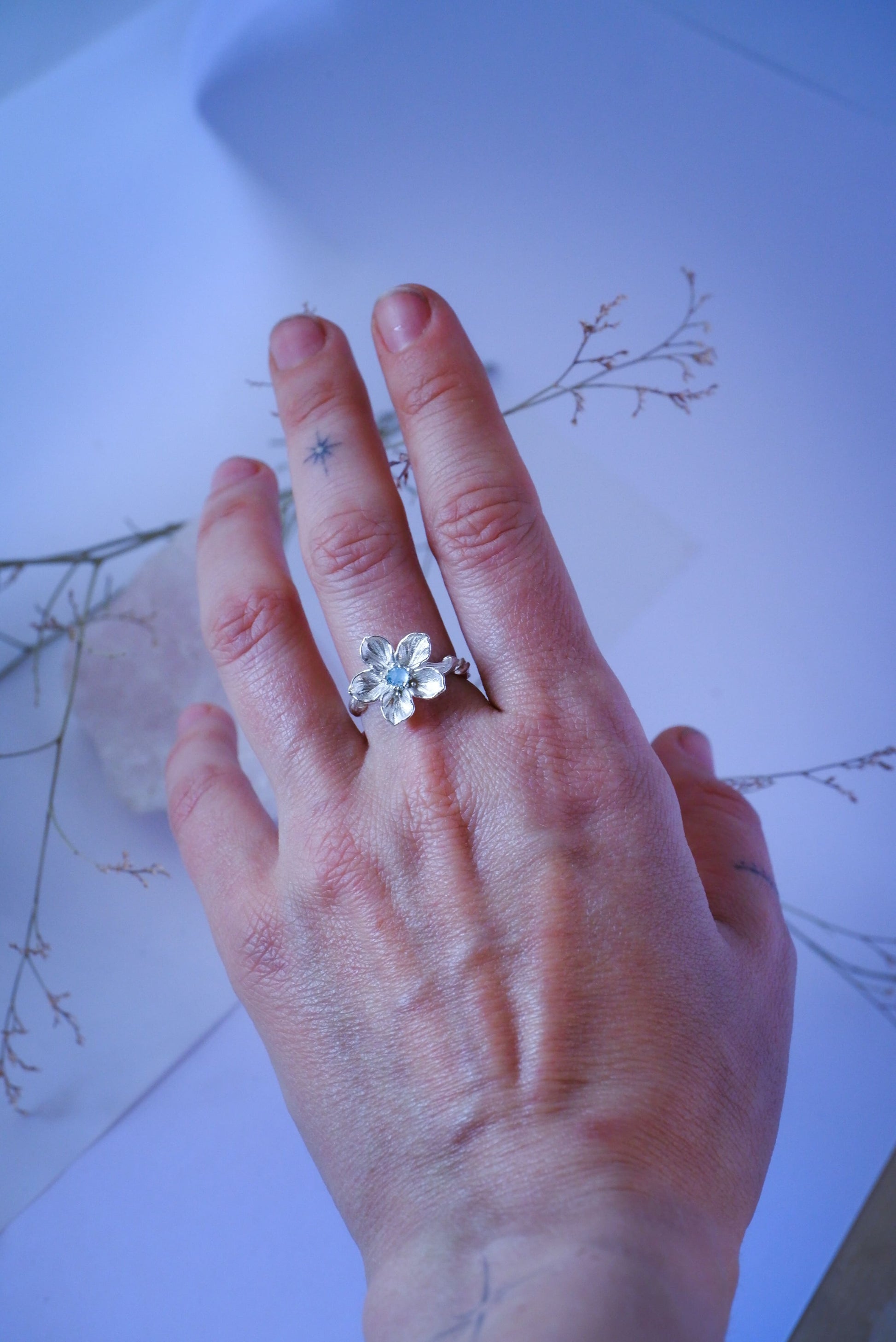 This enchanting ring is crafted from high-quality sterling silver, featuring an intricately detailed flower that captures the essence of a blooming spring garden.