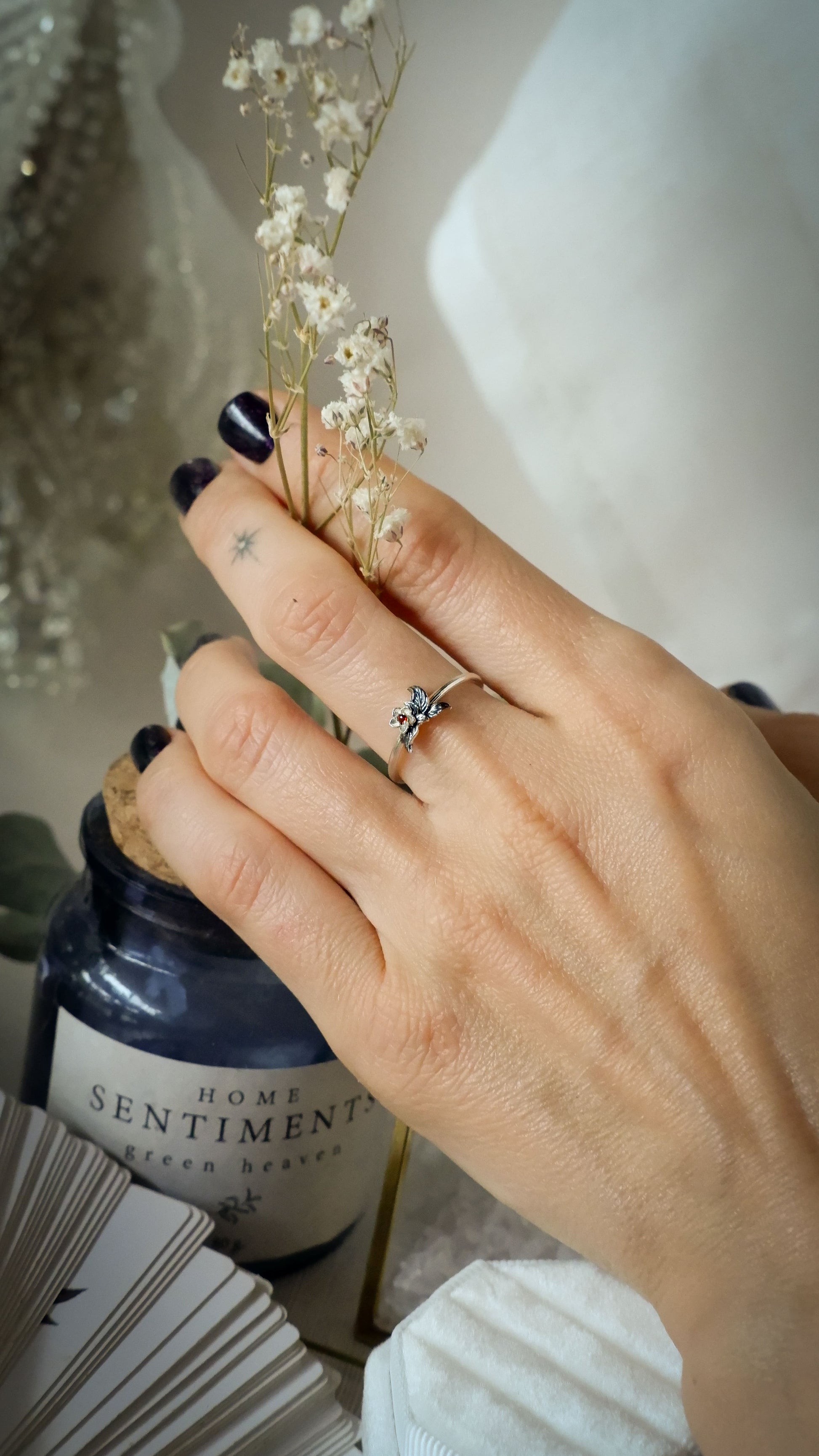 The ring with a small flower on it. In the heart of a flower lies a gemstone.