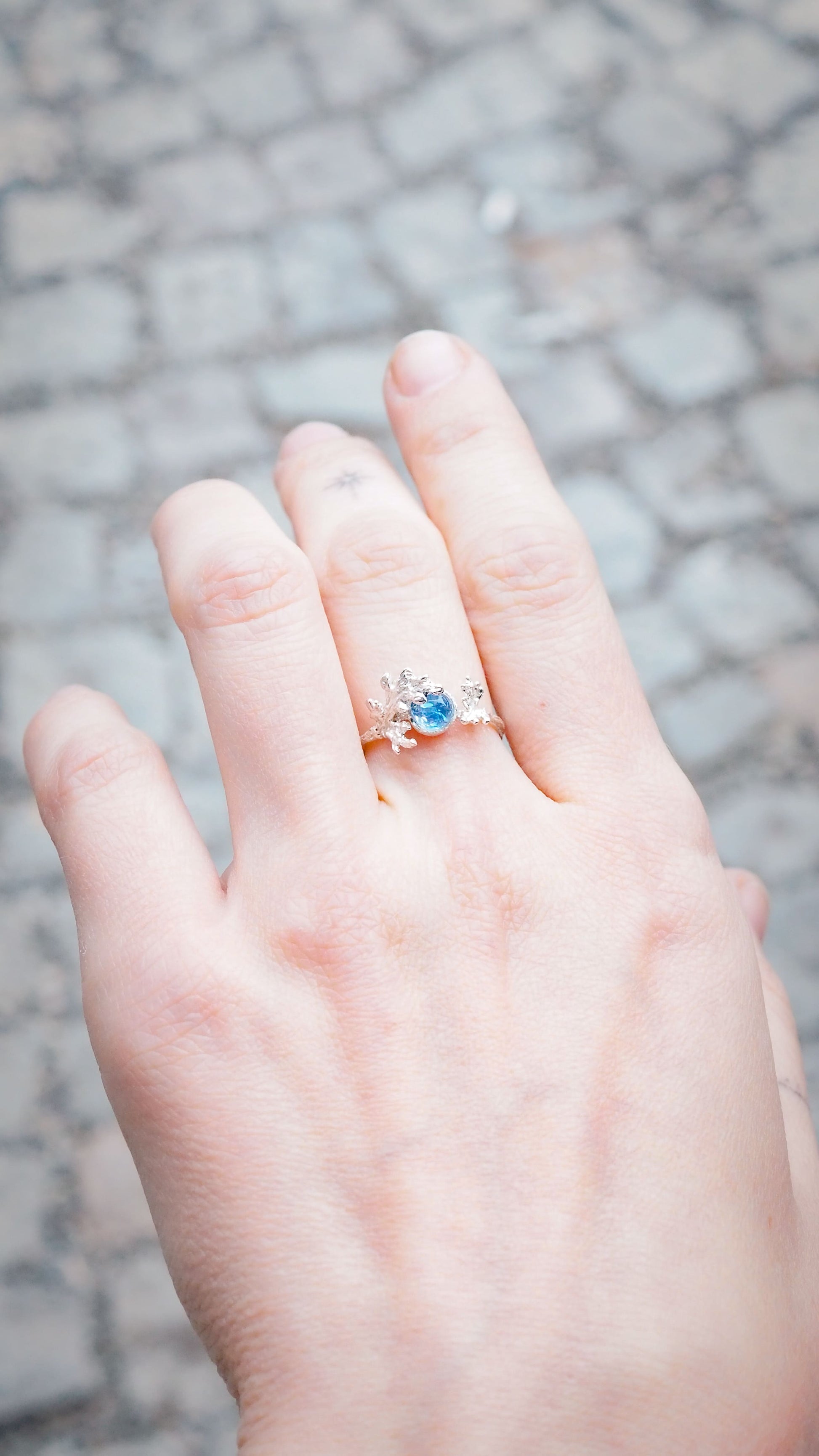 The silver sagebrush ring with a moonstone in it.