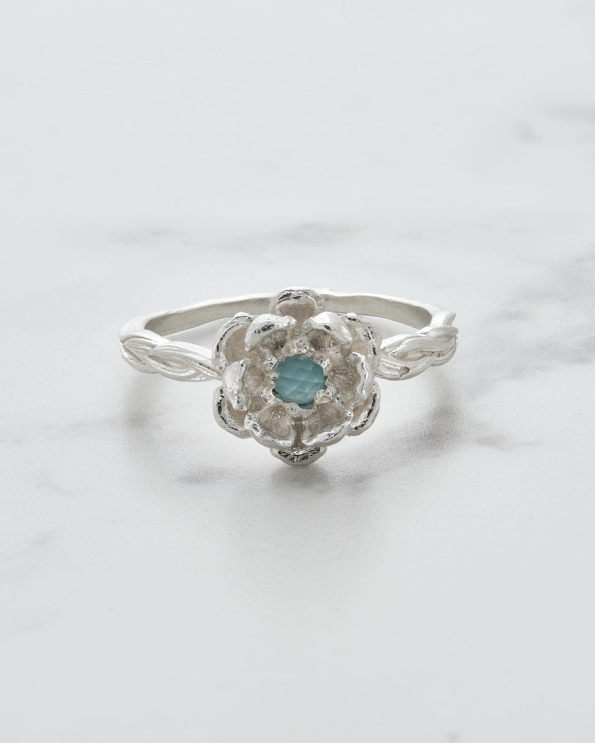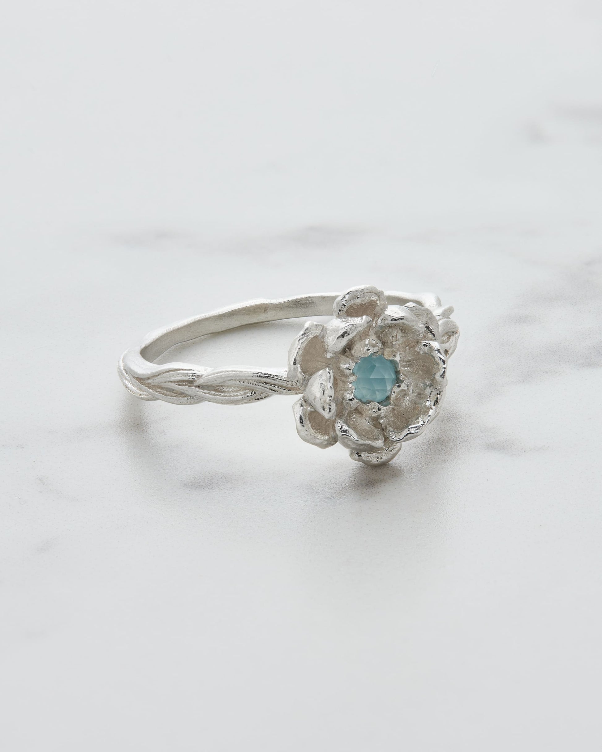 The Water Lily Ring, where the delicate petals of a water lily are captured in timeless silver.